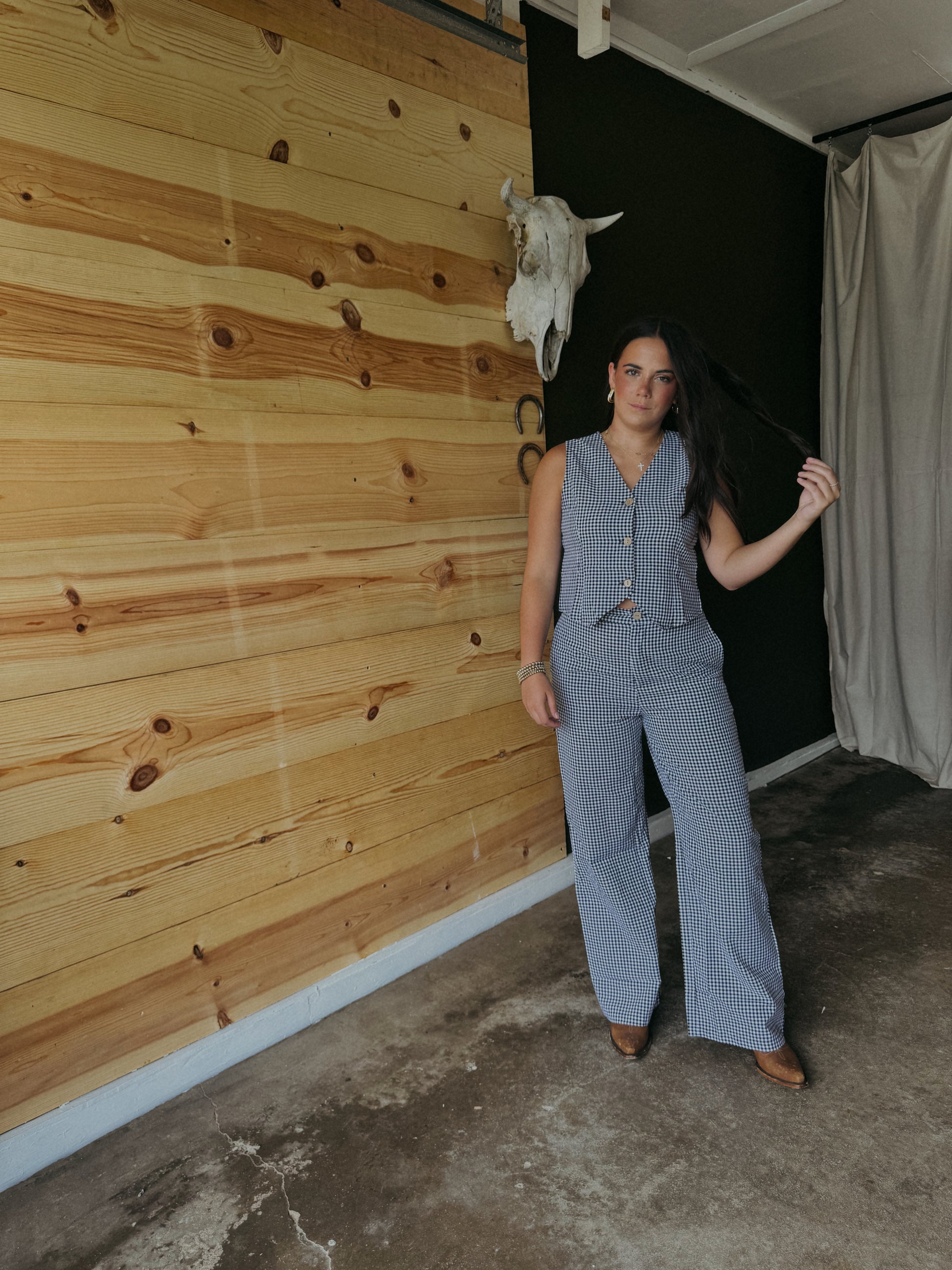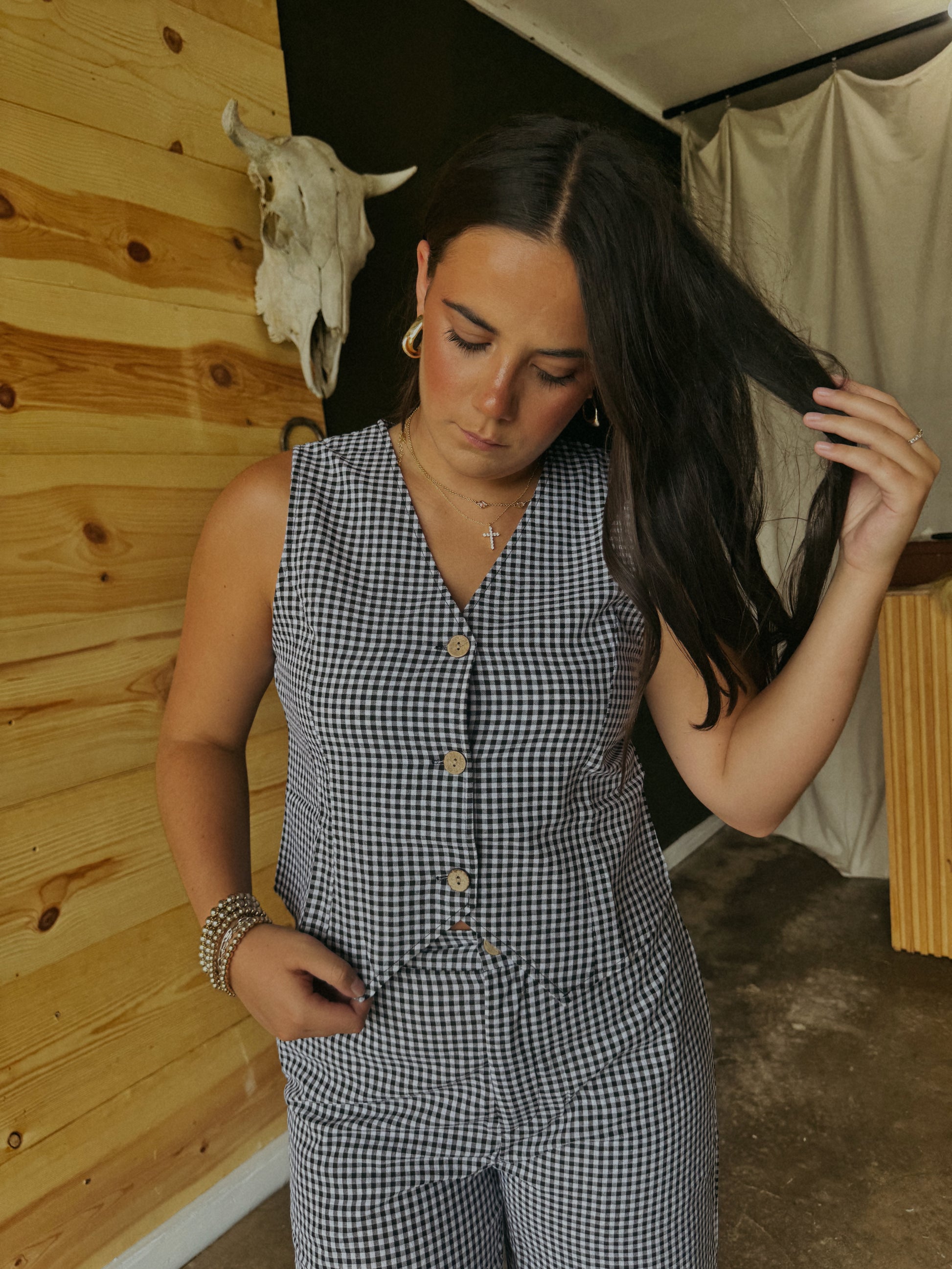Made from high-quality cotton, the Brenna Gingham Vest offers both style and comfort. With a classic button closure and a true-to-size fit, this versatile vest is the perfect addition to any wardrobe. Embrace a timeless look with this must-have piece.