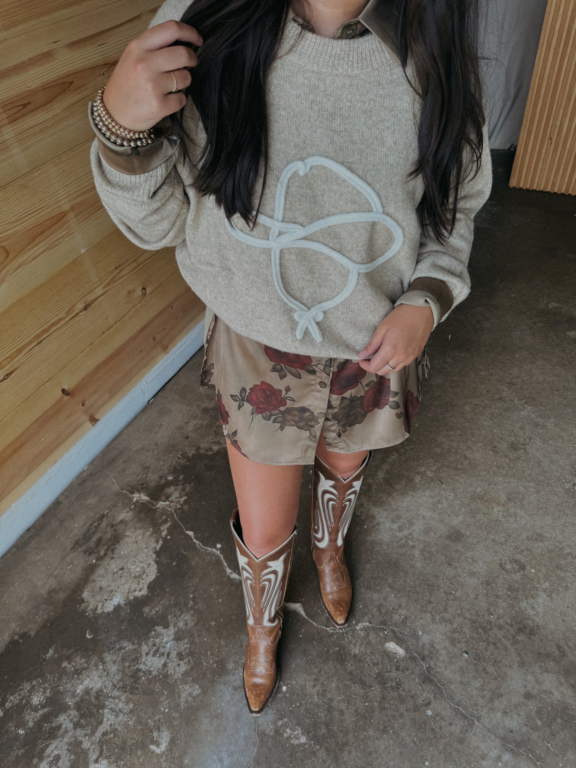 Elevate your western style with our Cowboy Silhouette Sweater. This oversized sweater features a bold graphic piping of a cowboy, adding a unique touch to your wardrobe. Crafted with quality materials, this sweater provides both comfort and style. Perfect for any occasion, whether you're on the ranch or strolling through the city.