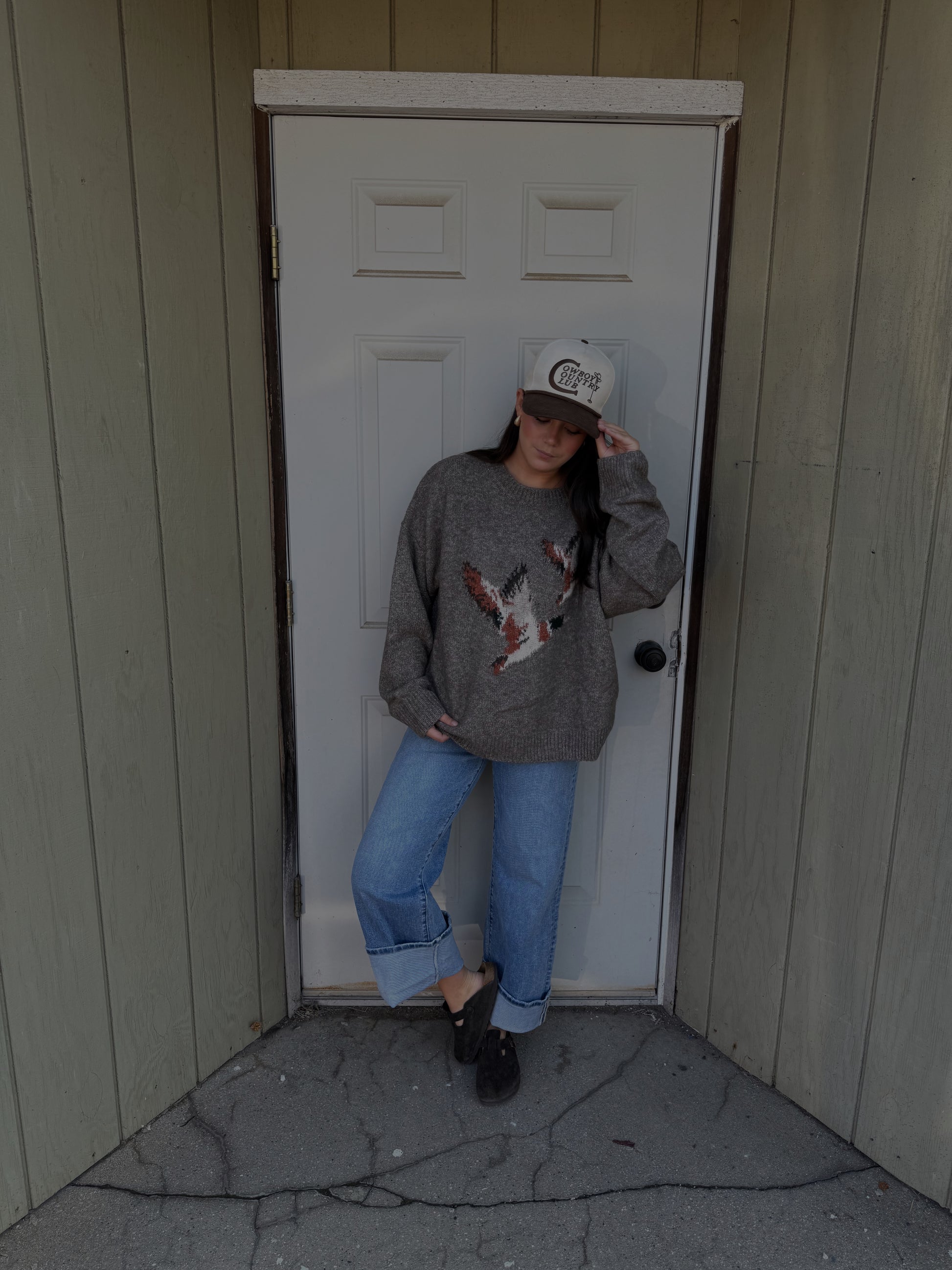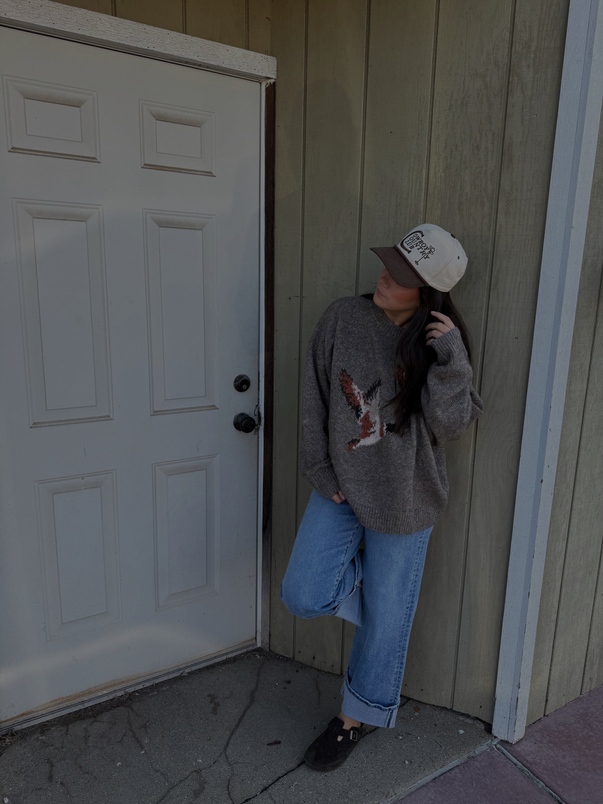 Upgrade your sweater collection with our oversized Flying Duck Knit Sweater. Expertly crafted with a flying duck design, this sweater is not only unique but also provides a comfortable and cozy fit. Perfect for any occasion, this sweater is sure to make a statement.