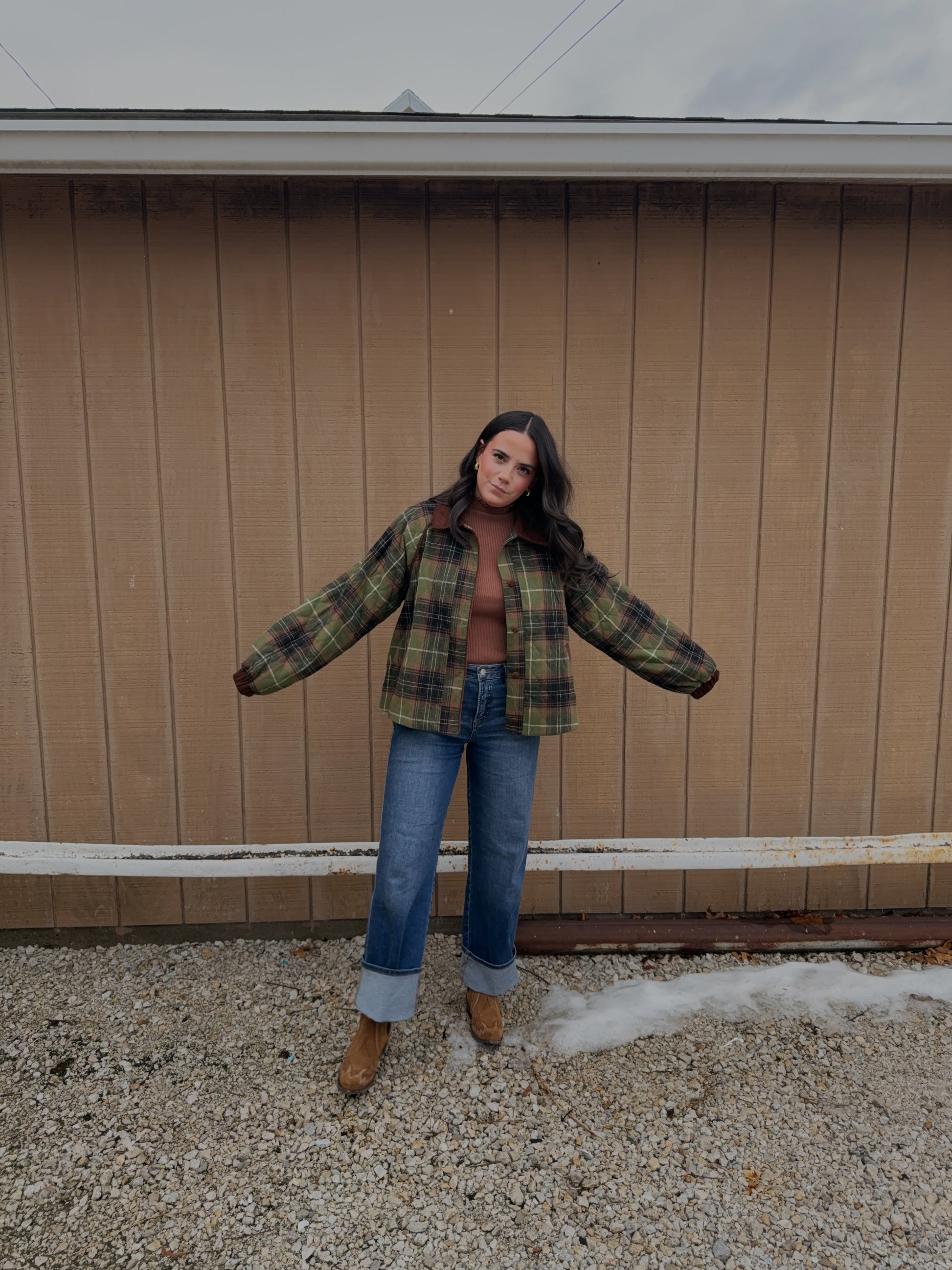 Elevate your style with the Green River Barn Jacket. This plaid jacket is lined for warmth and features a corduroy collar and sleeve hem for a touch of sophistication. Button up and embrace the comfort and durability of this must-have piece.