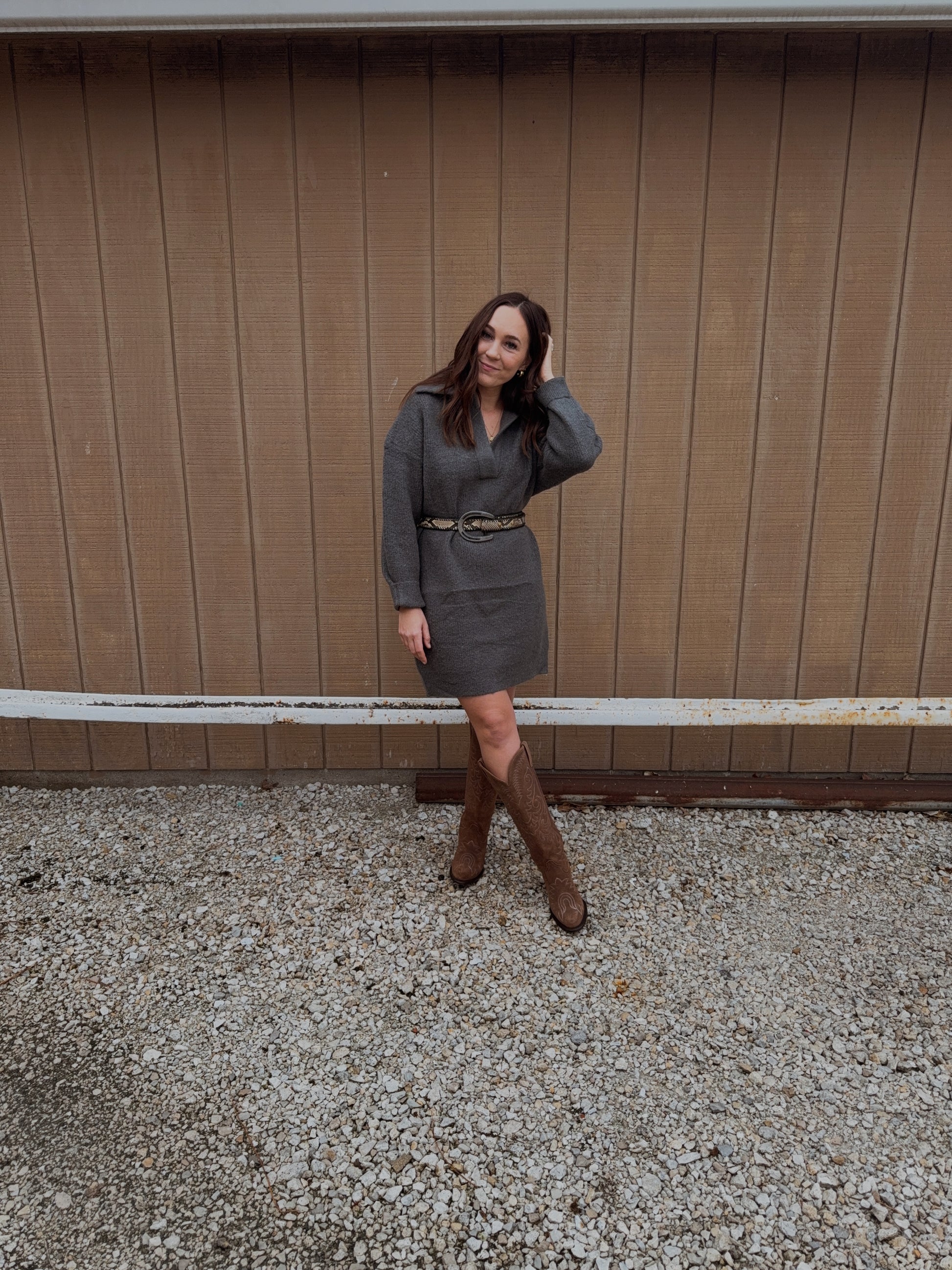 The Holly Sweater Dress combines cozy comfort with effortless style. This textured ribbed knit mini dress features a flattering split V neckline that adds a touch of sophistication, while the loose fit ensures all-day wearability. Perfect for layering over basics or wearing solo, this versatile piece transitions seamlessly from casual outings to relaxed gatherings. The ribbed texture adds visual interest and dimension, making it a wardrobe essential that works with your favorite boots, sneakers, or accessories.
