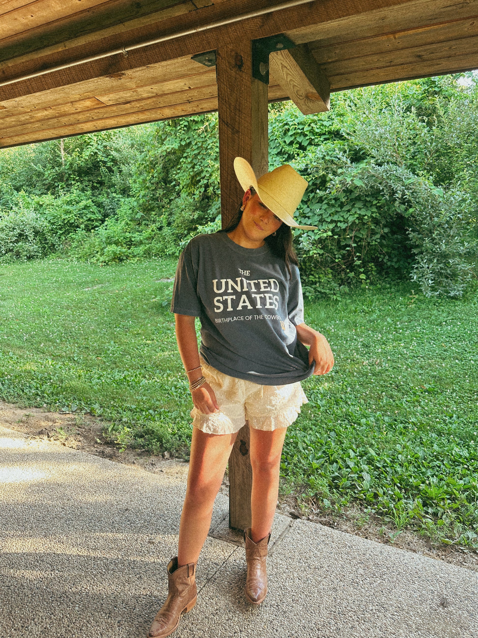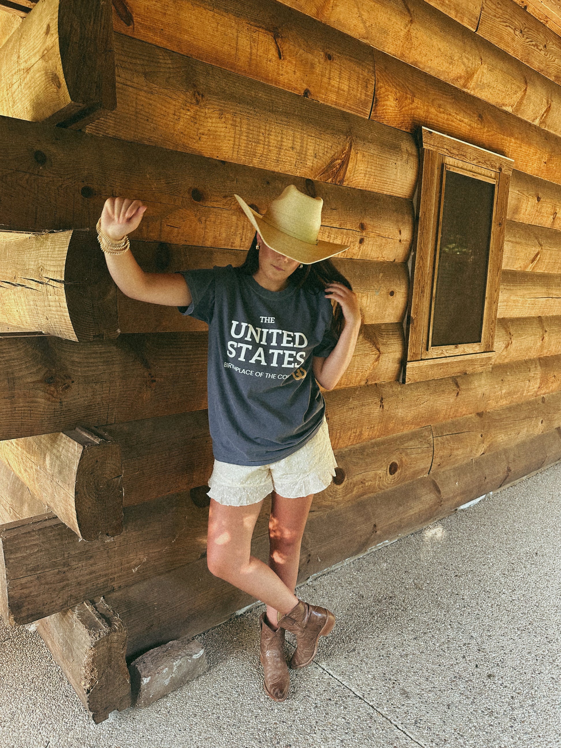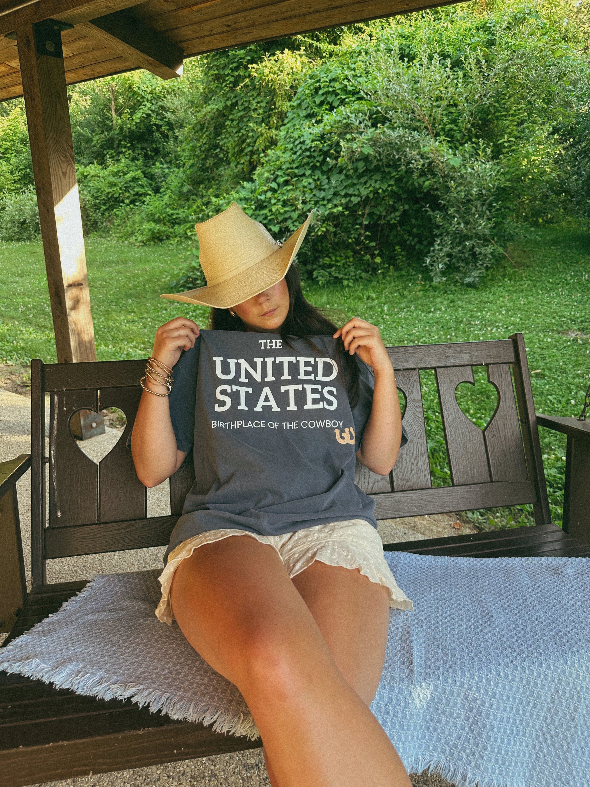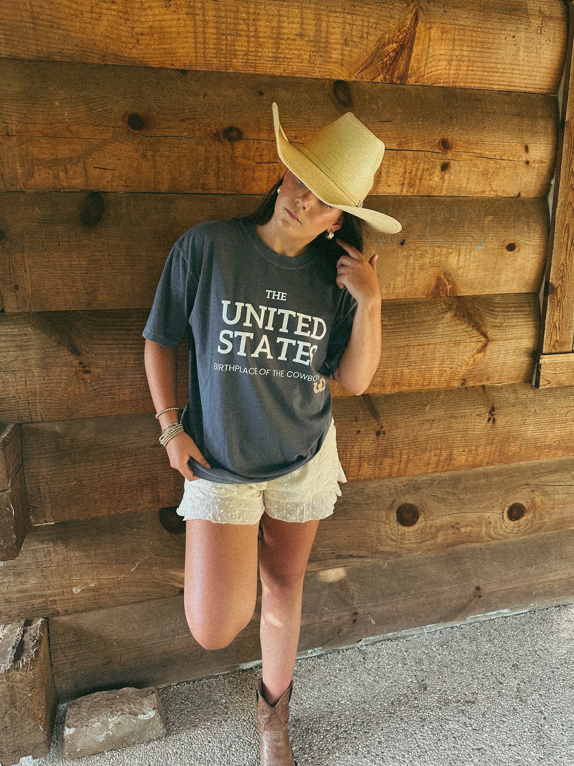 Show your love for the Wild West with our exclusive Home of the Cowboy Tshirt. Made with comfort colors, this shirt proudly displays "The United States, Birthplace of the Cowboy". Embrace your inner cowboy with style and comfort.