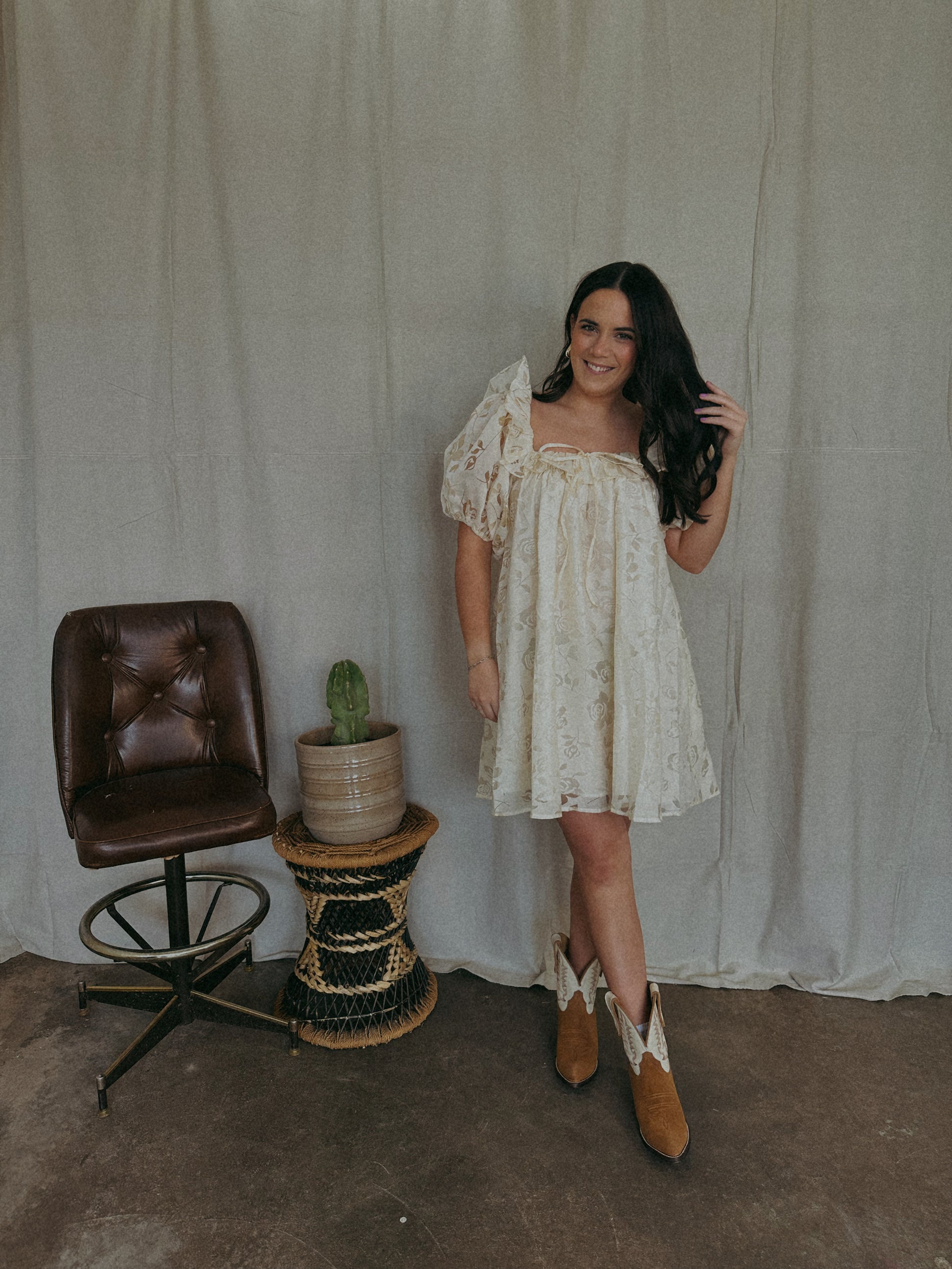 Discover effortless elegance with the Lana Ivory Dress. This floral burnout mini dress features a charming bow detail, delicate puff sleeves, and a feminine ruffle neckline. Perfect for any occasion, this dress will make you stand out with a touch of vintage-inspired style.
