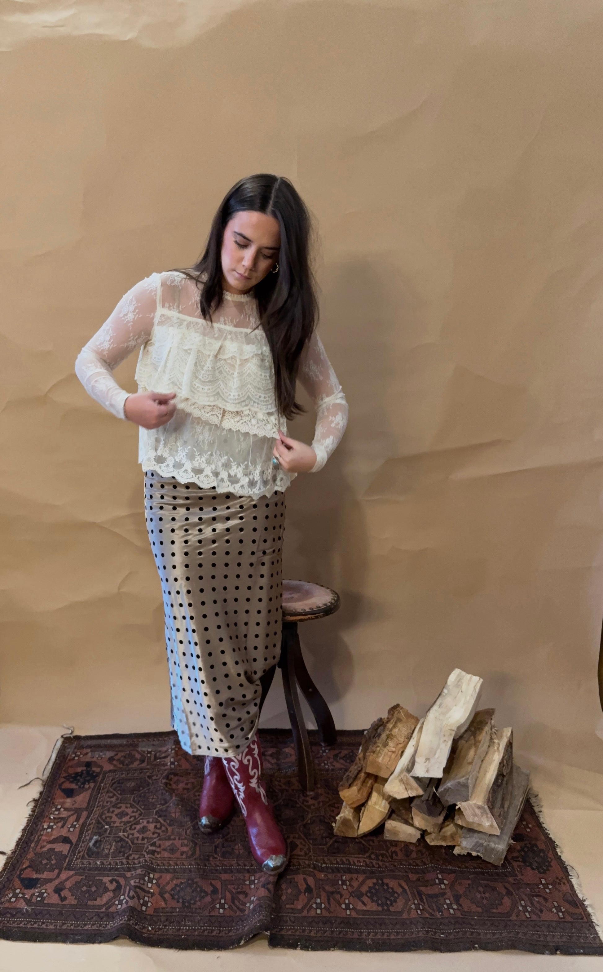 Introducing the Lillian Lace Ruffle Blouse—a timeless piece designed to help you feel confident and beautiful. This elegant blouse features delicate lace detailing paired with charming ruffle accents that add movement and dimension to your silhouette. The classic round neckline offers a flattering, versatile look that works beautifully for both professional settings and special occasions. Whether you're dressing up for an event or elevating your everyday style, this blouse celebrates your individuality with understated sophistication and grace.