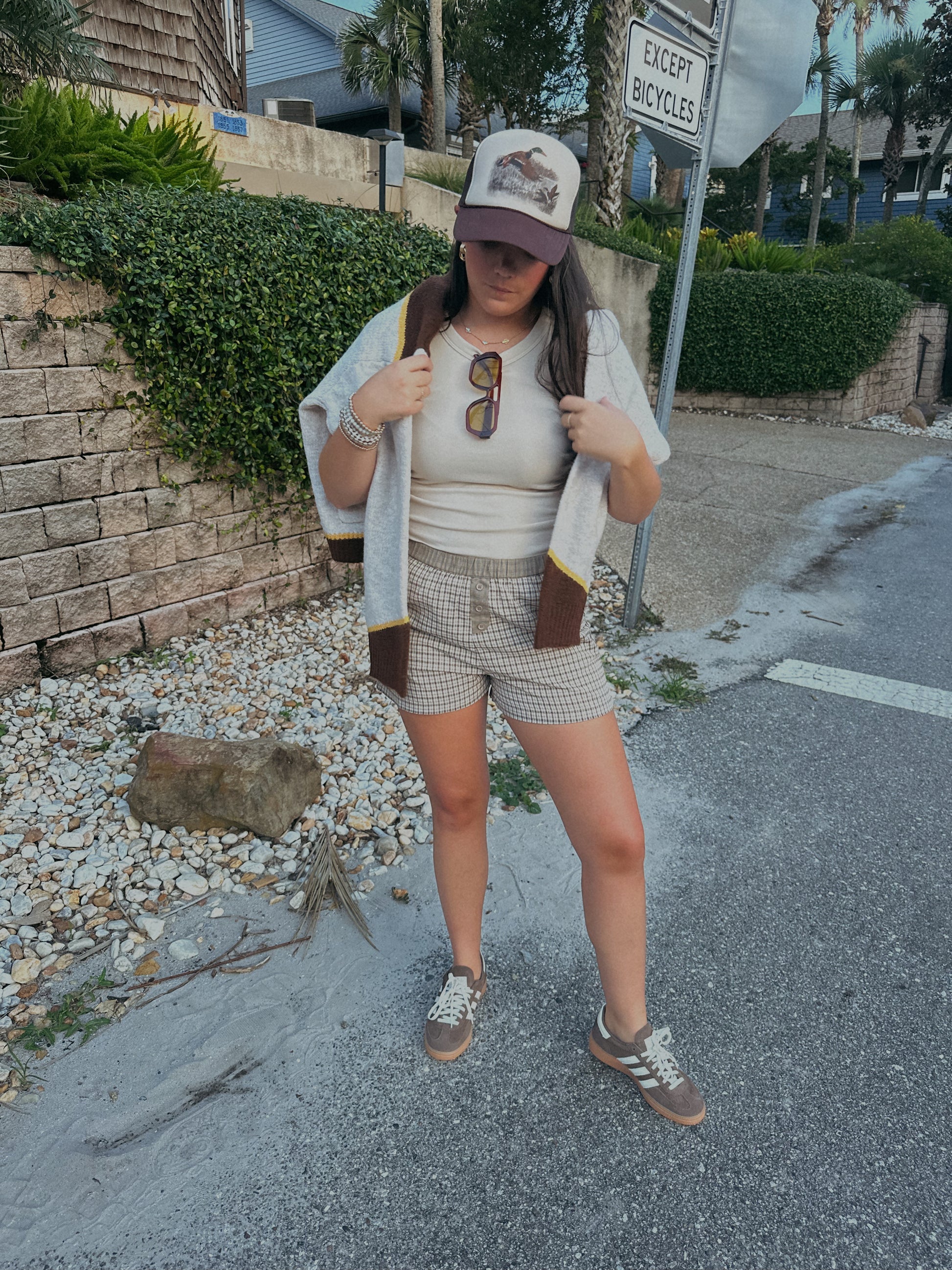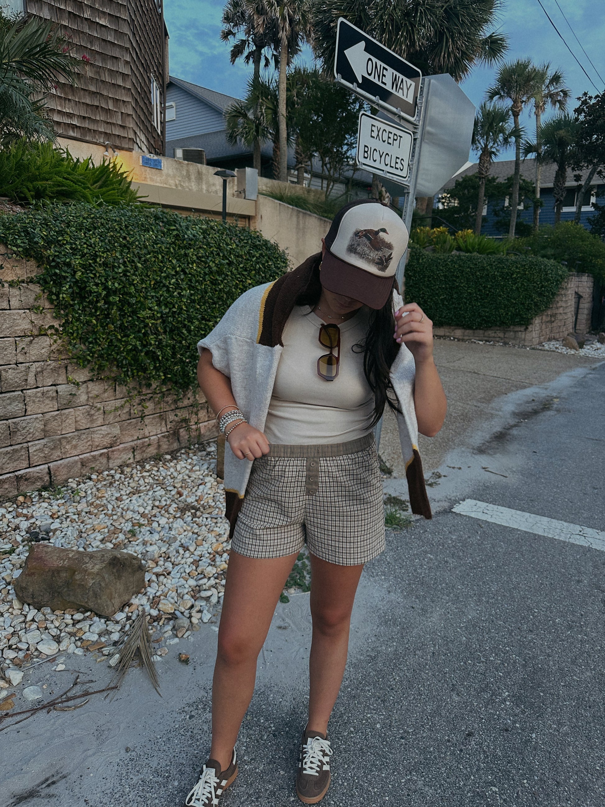 Introducing the Long Way Plaid Shorts - perfect for a day out! These shorts feature a classic plaid design, a drawstring waist for comfortable fit, and a button front for easy wear.