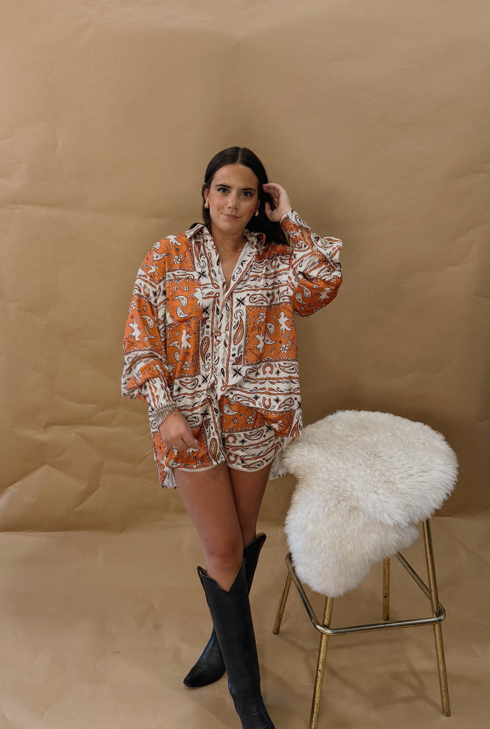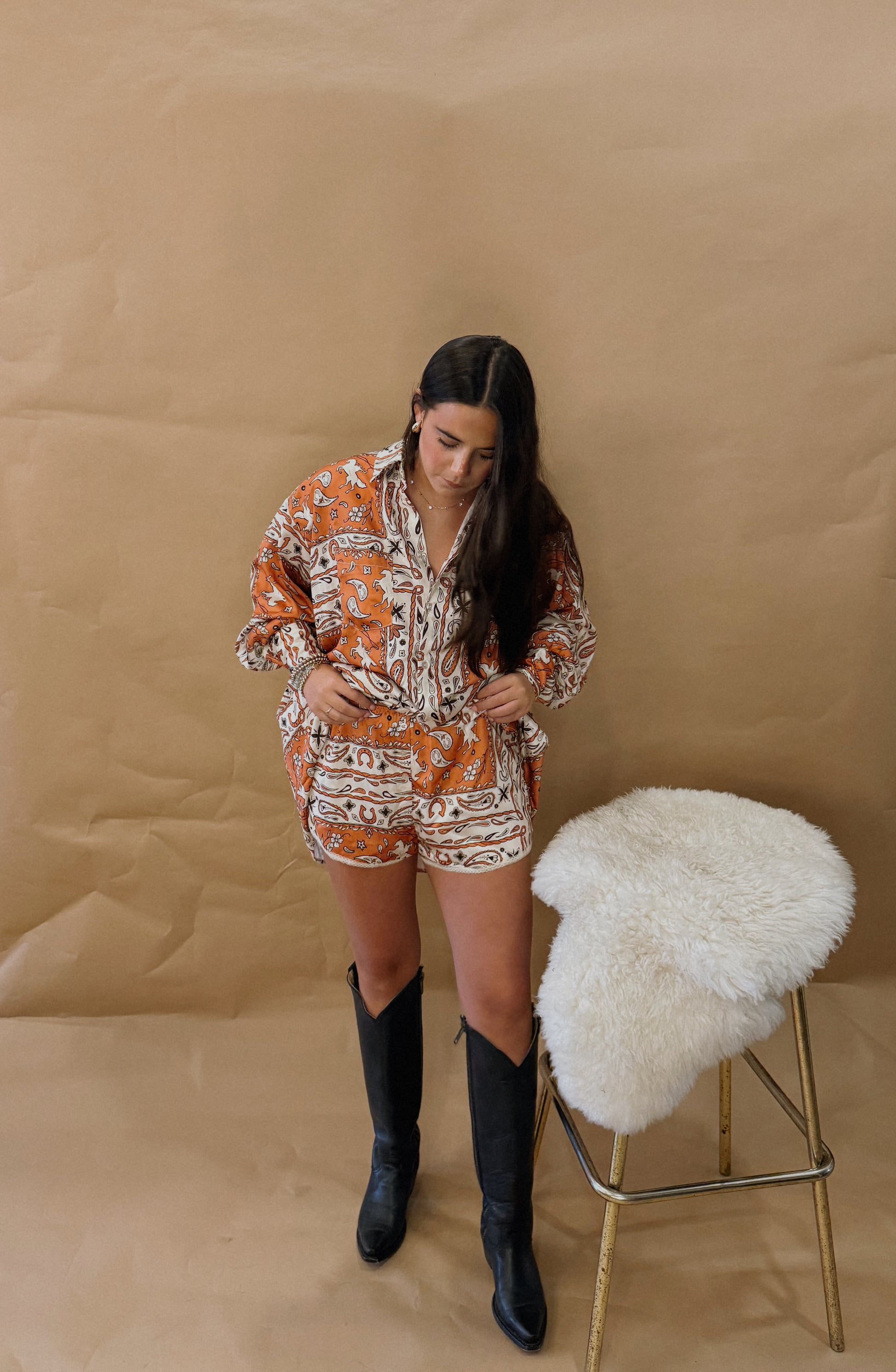 These Lost Horse Shorts feature a mid rise and lace edging, combining comfort with a touch of femininity. Made with satin material, these shorts can be paired with the Lost Horse Tunic Top for a complete look. Enjoy these timeless and versatile shorts in any season.