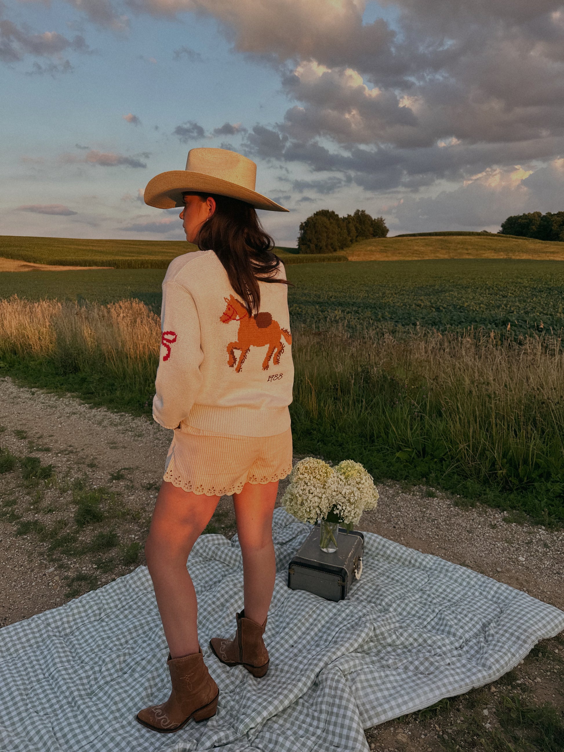 Stay stylish and cozy with our Lucky Baby Cardigan. Featuring a playful mix of horseshoe, bow, and horse graphics, this cardigan is perfect for any outfit. Made with soft and durable materials, it offers both comfort and charm.