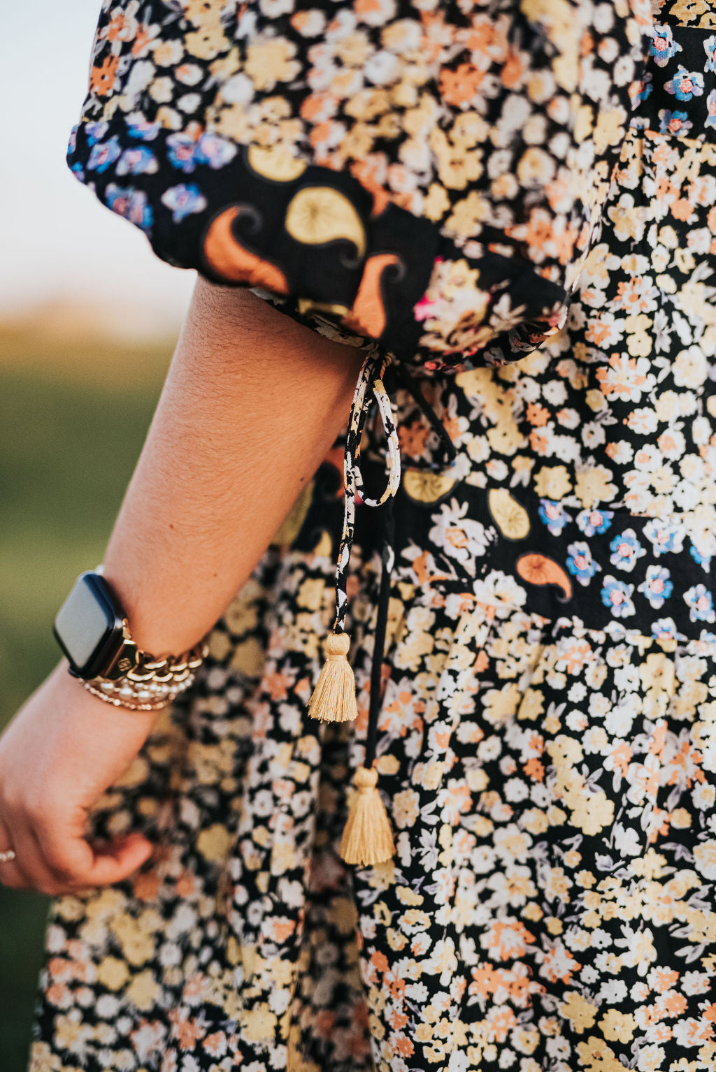 Feel daring and bold in our Meet Me At Midnight Floral Dress! This eye-catching number features a flattering square neck, playful floral print, and exquisite tassel detailing. With adjustable puff sleeves and a tiered skirt fit for any occasion, you’ll be in full control of your next adventure. Dare to go beyond the ordinary!