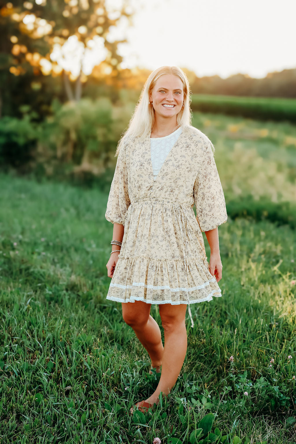 This Paisley Babydoll Dress features a flattering V neck design and a tie waist for a comfortable and customizable fit. The puff sleeves add a touch of style while the lace detailing adds a feminine touch. Complete the look with the not included lace undershirt. Perfect for any occasion, this dress offers both comfort and elegance.