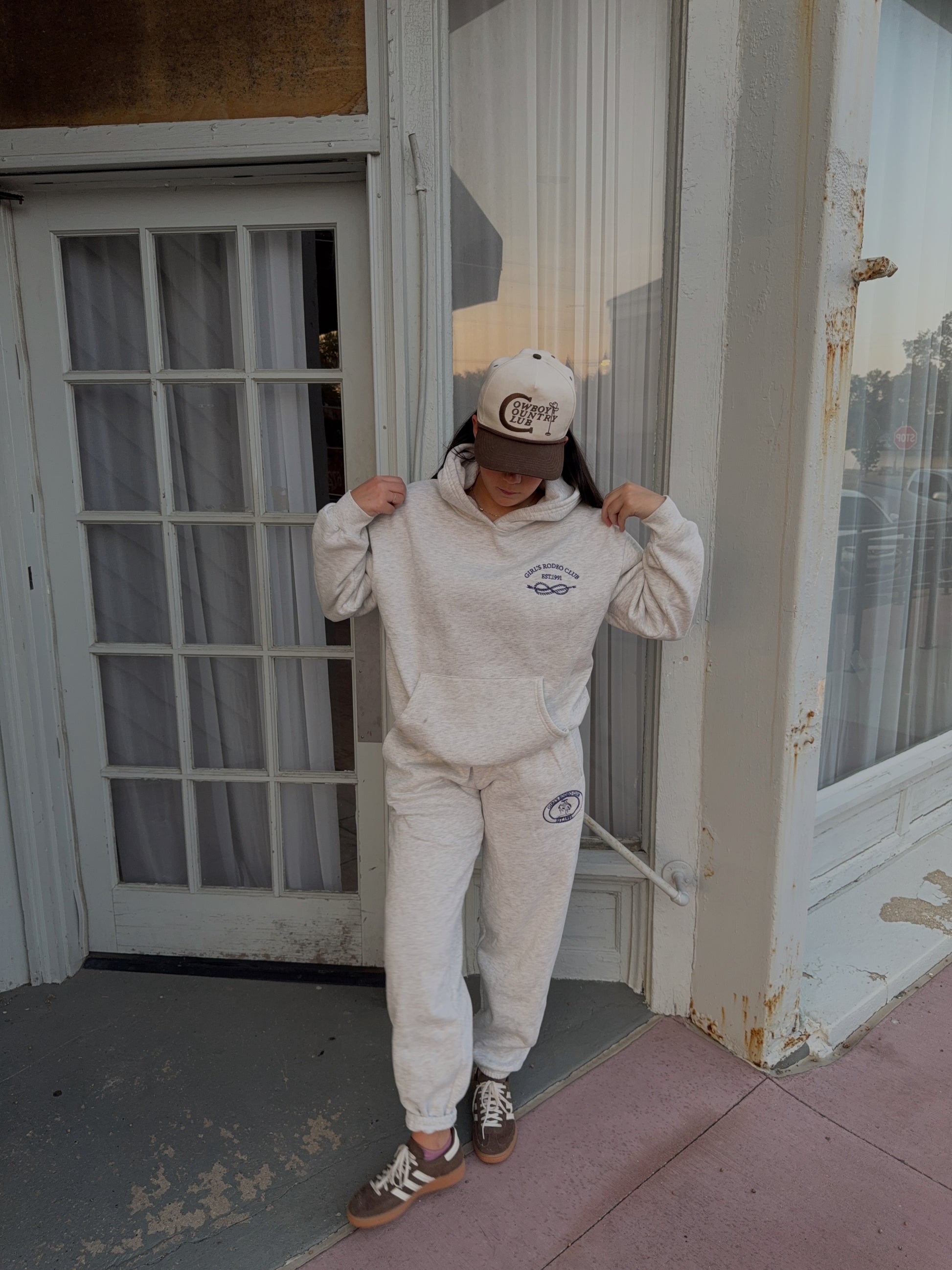 The Rodeo Club Hoodie is the perfect addition to your casual wardrobe. Made with a comfy hoodie and adorned with an intricately embroidered design, this sweatshirt lets you show off your love for the 'Girls Rodeo Club' in classic style. Pair it with our matching sweatpants for the ultimate rodeo-inspired outfit.