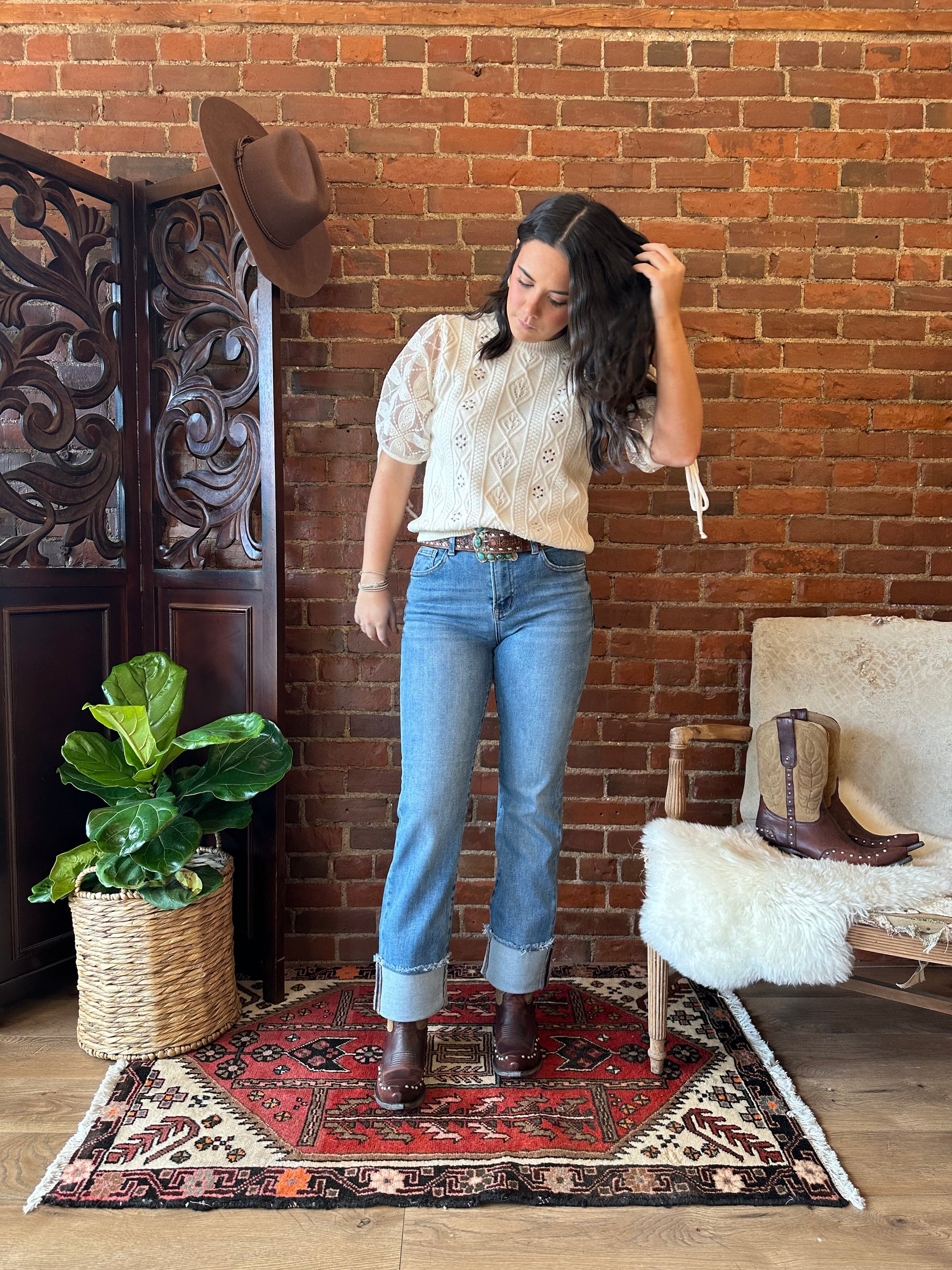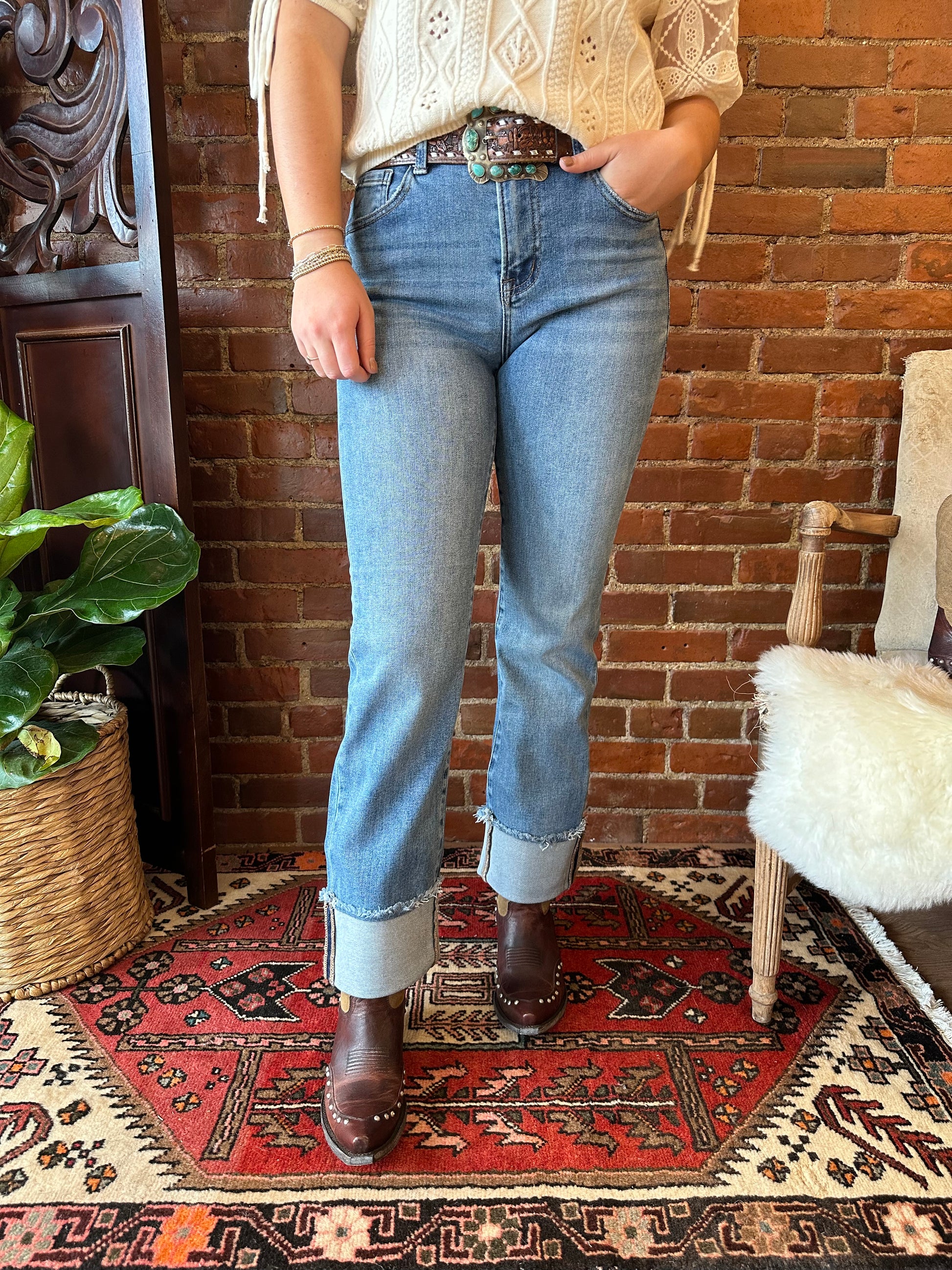 Introducing the Rory Straight Leg Cuffed Jeans by Risen. These jeans offer a classic straight leg silhouette with a modern twist - a cuffed hem. Made with stretchy fabric and true to size for maximum comfort. Upgrade your denim with this non-distressed option.