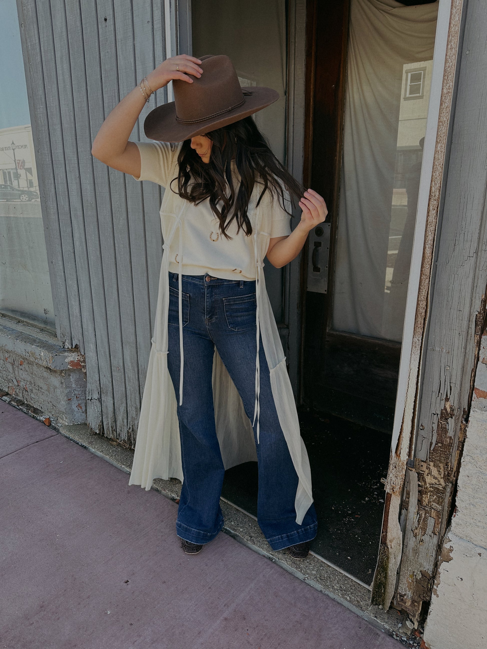 Crafted from high-quality denim, the Ryleigh Denim Trousers by Risen offer both style and comfort. With a flattering flare cut and practical patch pockets, these trousers are perfect for everyday wear. The elastic waist band ensures a comfortable fit, while the 33" inseam in a size 26 provides a tailored look. Upgrade your wardrobe with these versatile trousers.