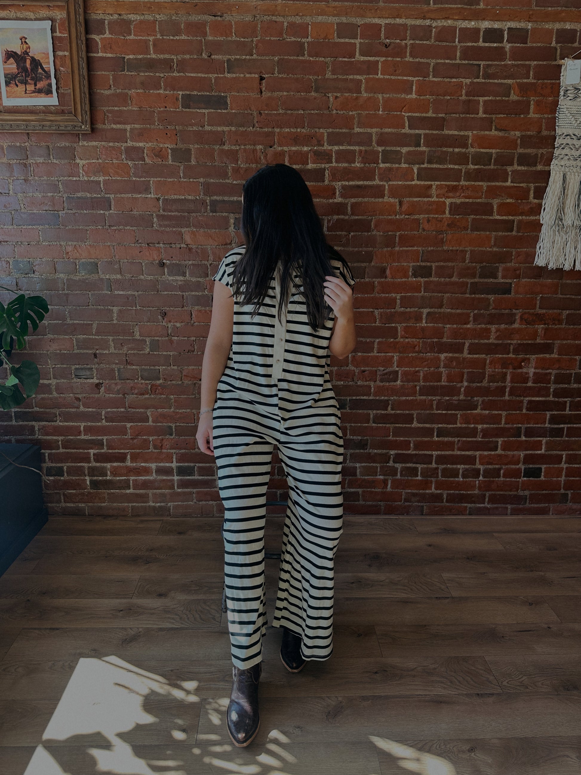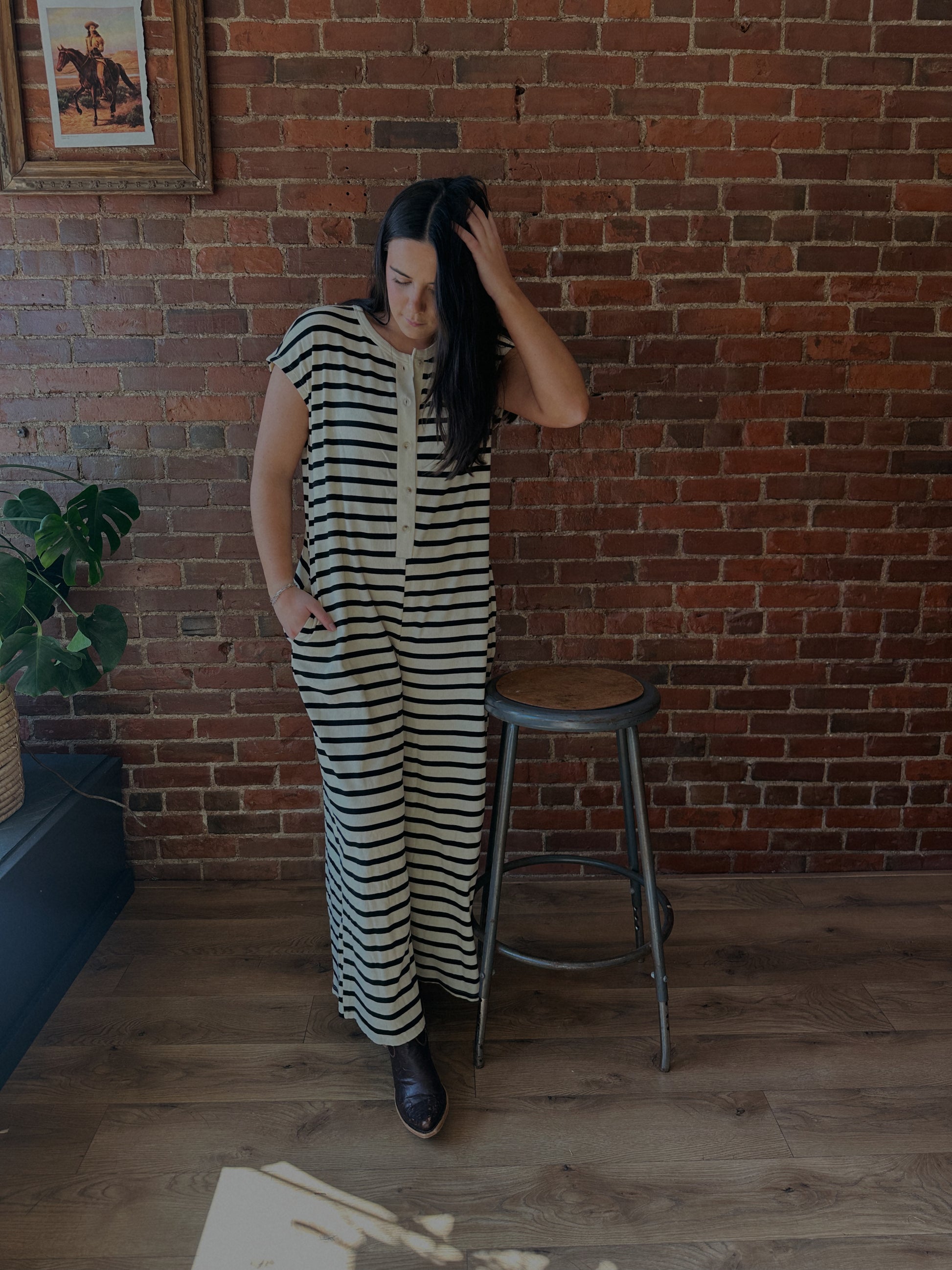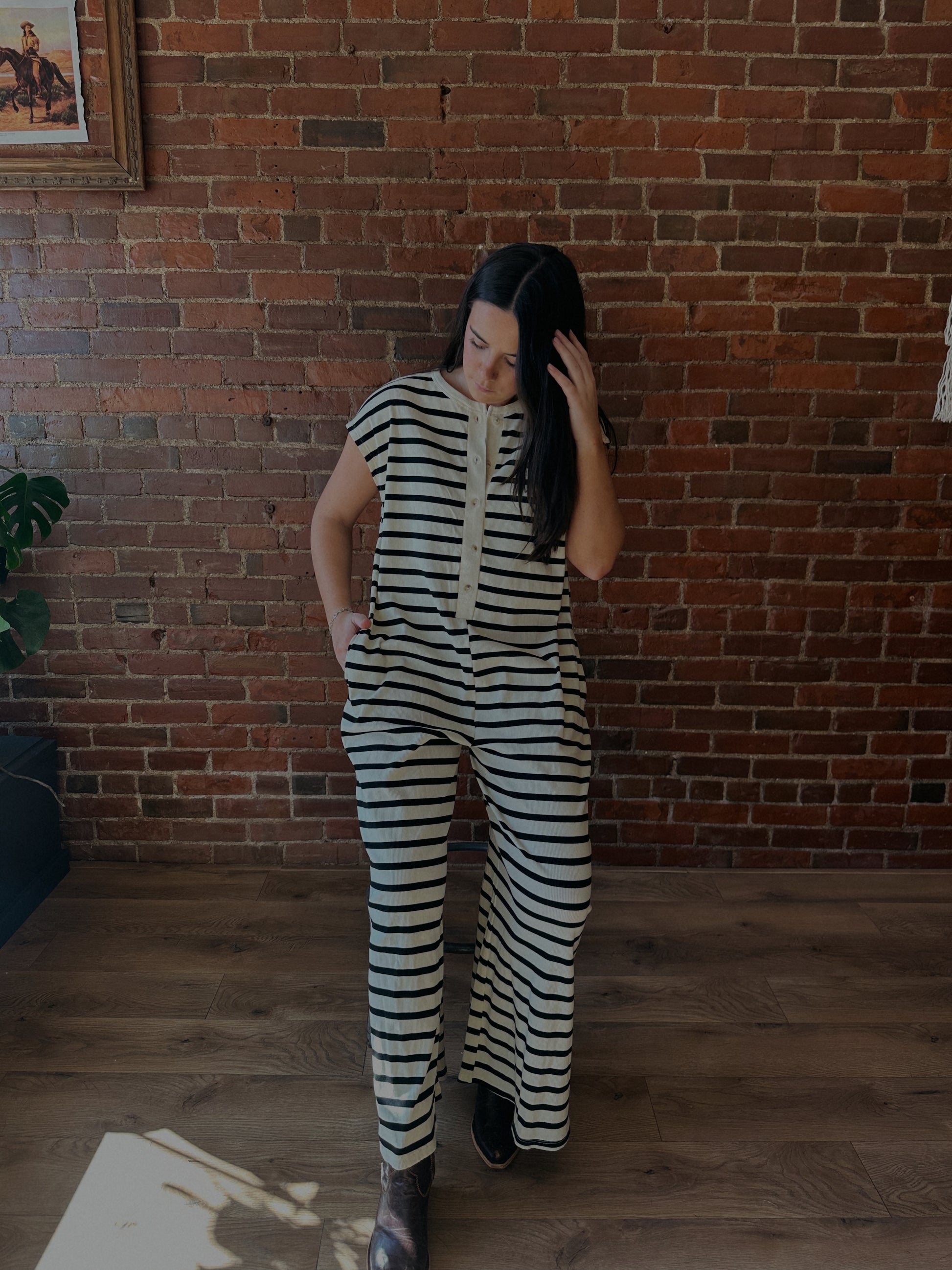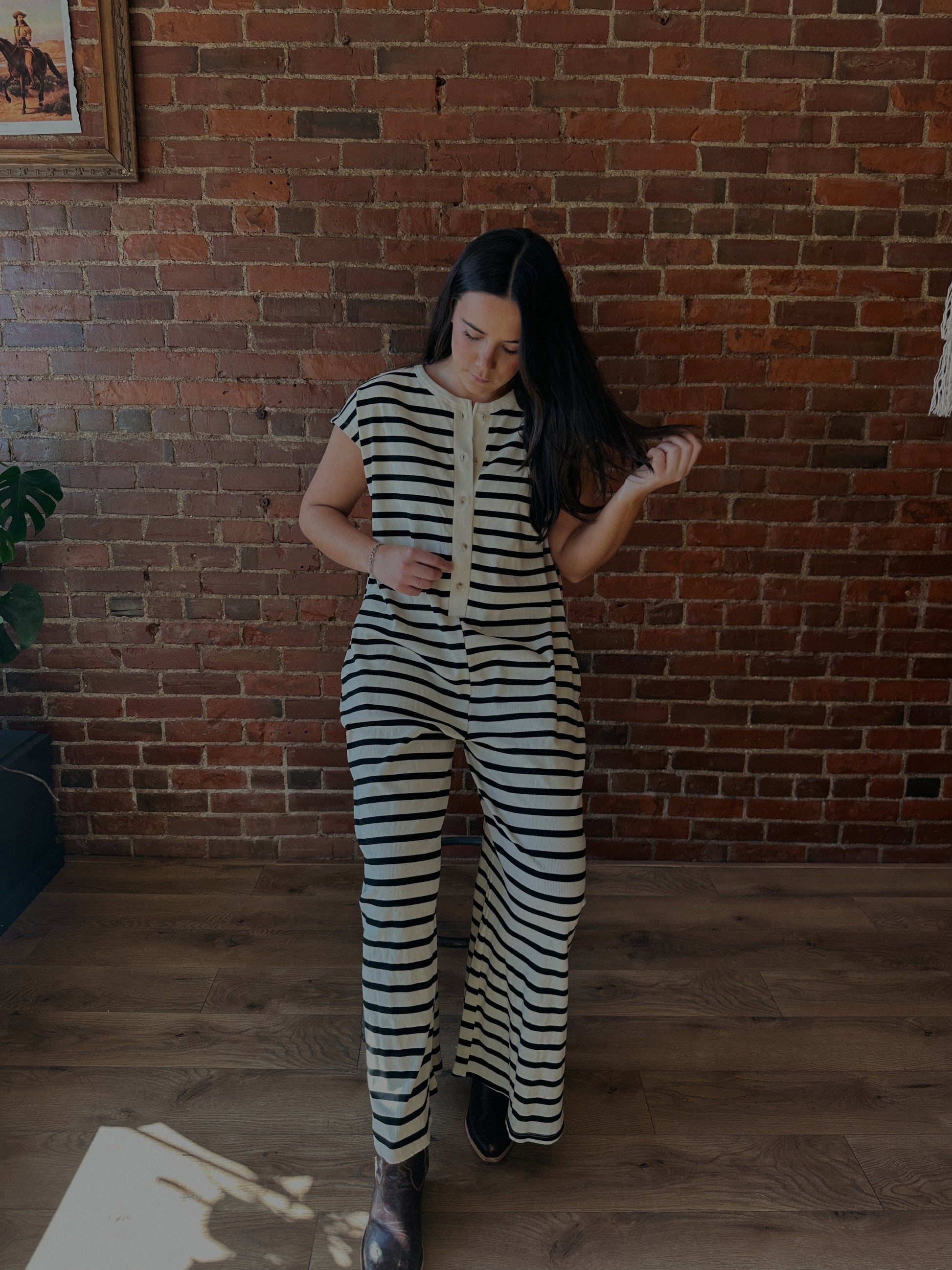 The Stanford Striped Jumpsuit is the perfect combination of comfort and style. The cozy, oversized fit and stretchy fabric make it a must-have for any wardrobe. The button front adds a touch of sophistication, while the ribbed material ensures a flattering fit. Upgrade your loungewear collection with this versatile jumpsuit.