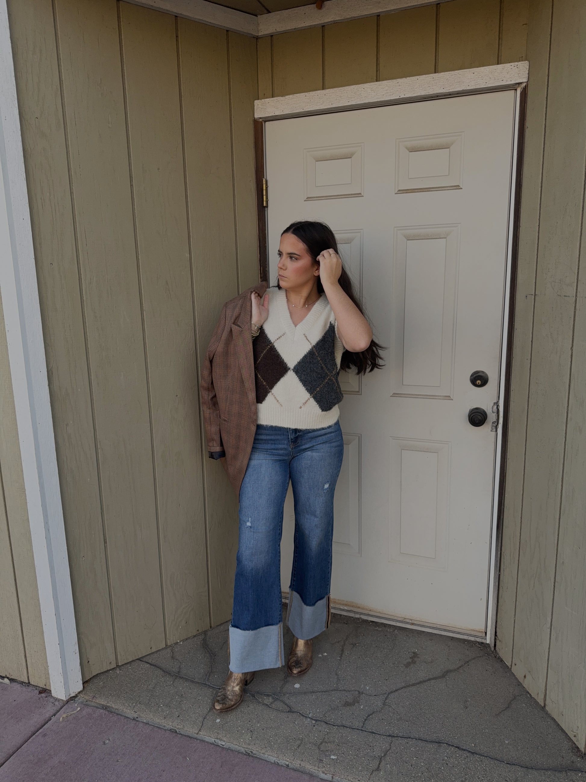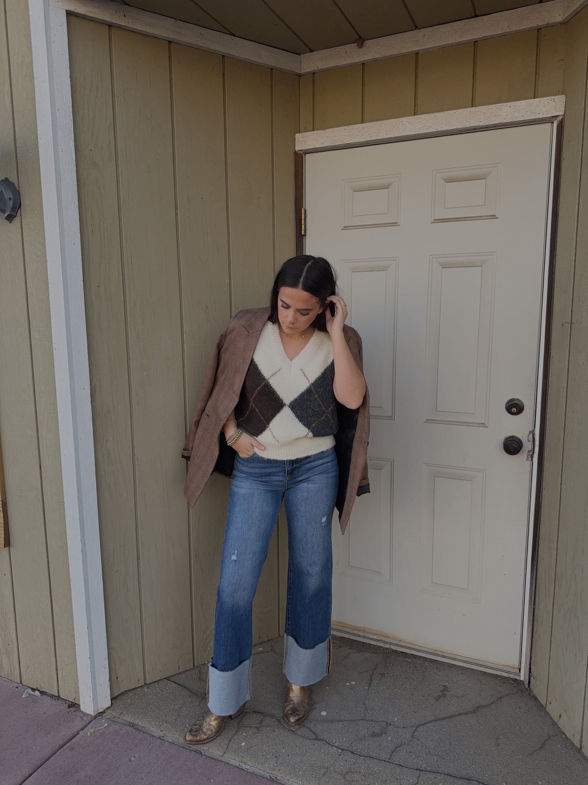 Expertly crafted with a classic argyle print, The Elm Sweater Vest will elevate any outfit. The v neck design adds a touch of sophistication while the soft knit fabric ensures all-day comfort. Perfect for layering or wearing on its own, this vest is a must-have for any wardrobe.