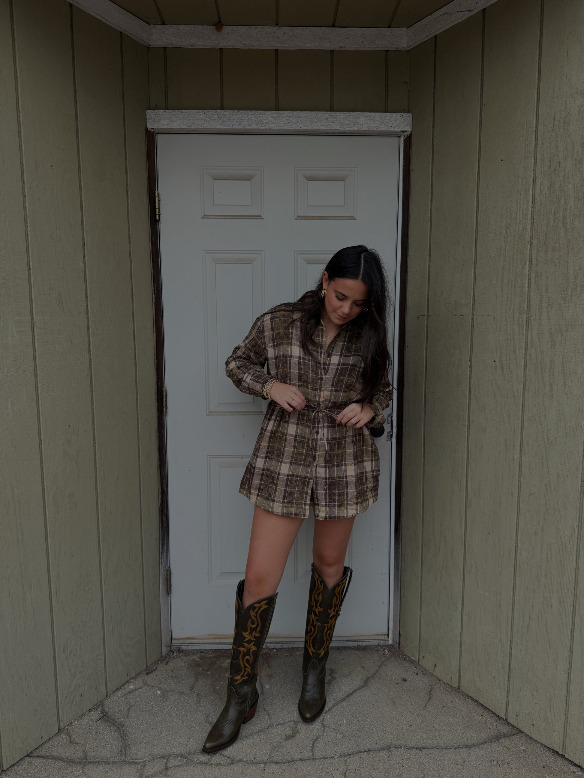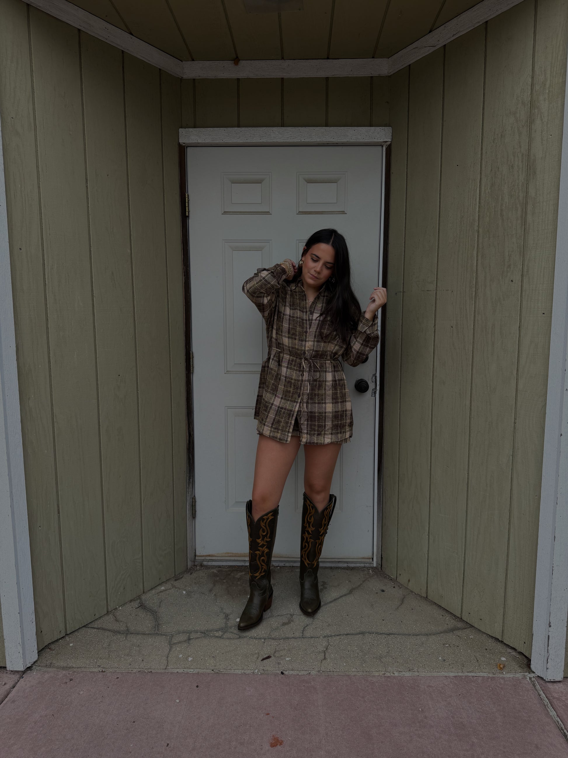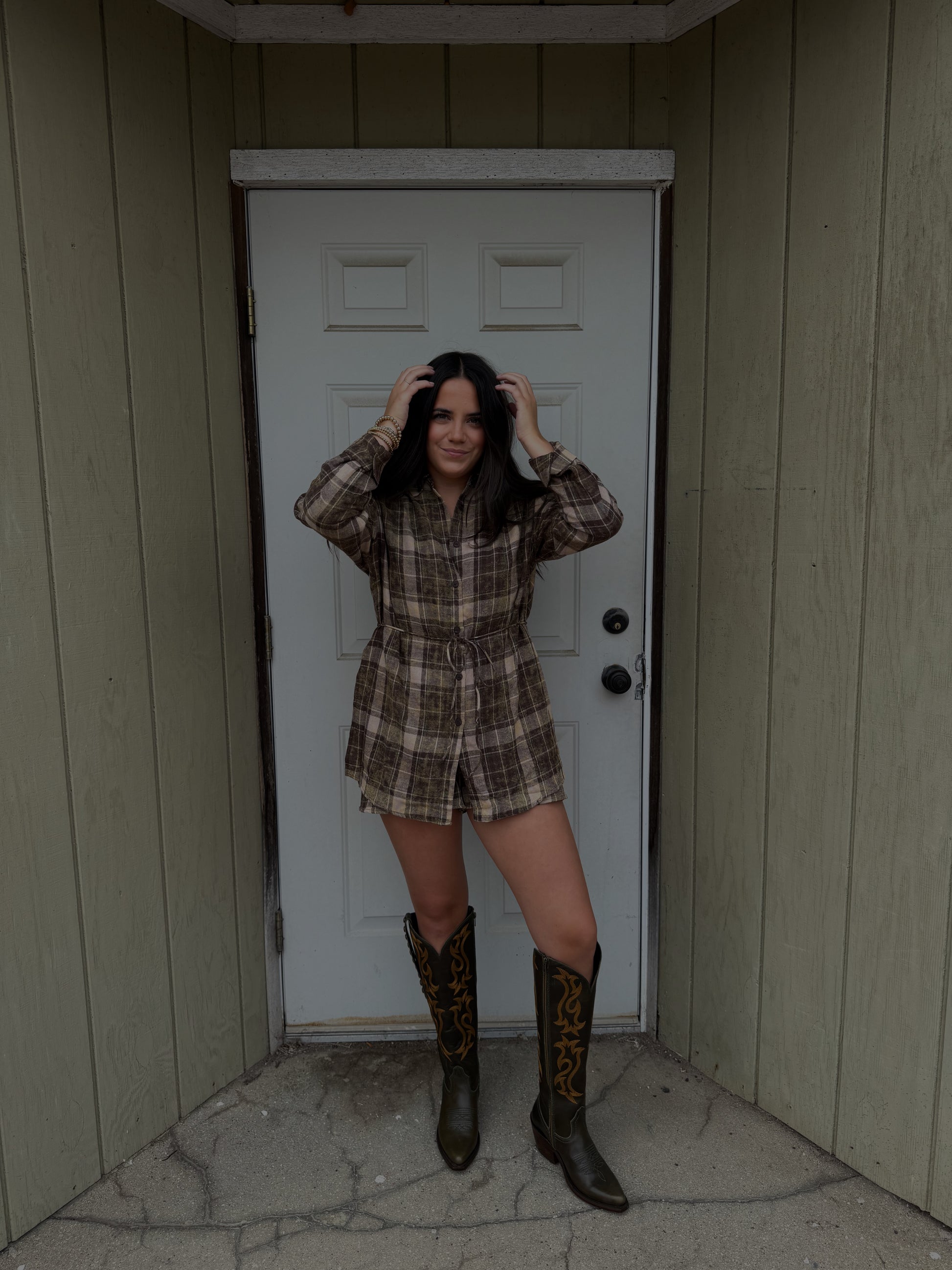 This Trailhead Flannel Romper is perfect for outdoor adventures or casual days. The soft flannel material provides comfort while the optional tie belt adds a flattering touch. The button up front allows for easy wear and adjustable coverage.