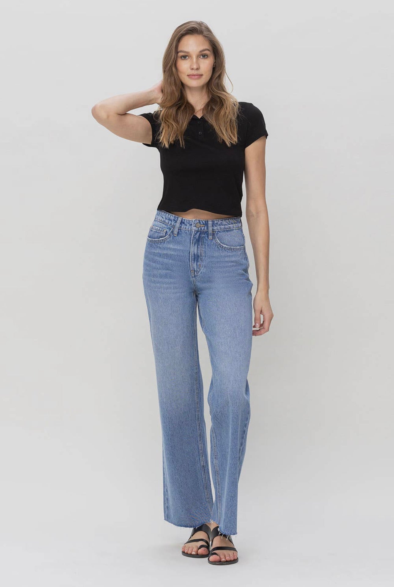 These 90's Vintage Super High Rise Loose Jeans offer maximum comfort with their wide leg and 100% cotton construction. With raw hem detailing, these jeans provide a modern twist on a classic look. Enjoy the perfect mix of fashion and comfort.
