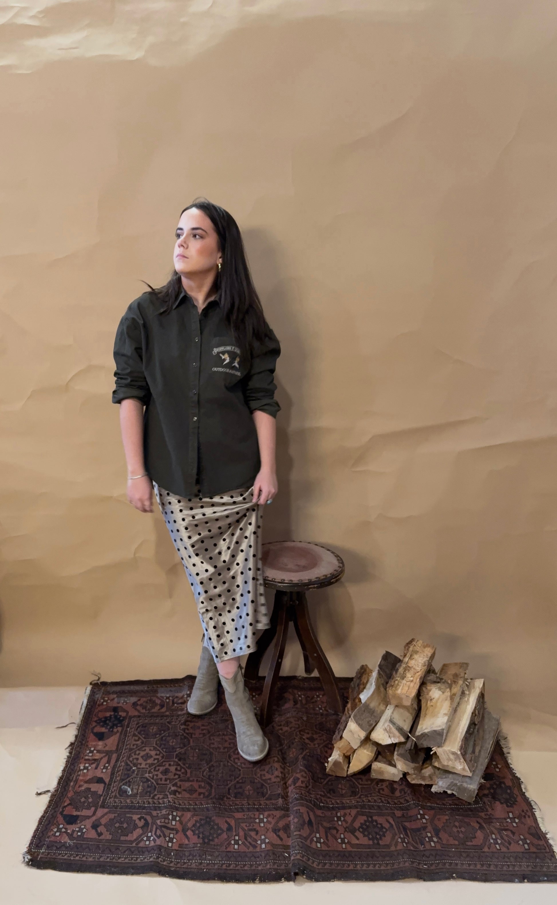 Embrace effortless style with this oversized button-up shirt, crafted from heavyweight cotton that promises durability and comfort. The standout embroidered wildland duck graphic adds character and a touch of nature-inspired charm to your everyday wardrobe. Perfect for layering or wearing solo, this relaxed-fit piece works beautifully with jeans, skirts, or your favorite casual bottoms. A versatile staple that celebrates your appreciation for quality craftsmanship and timeless design.